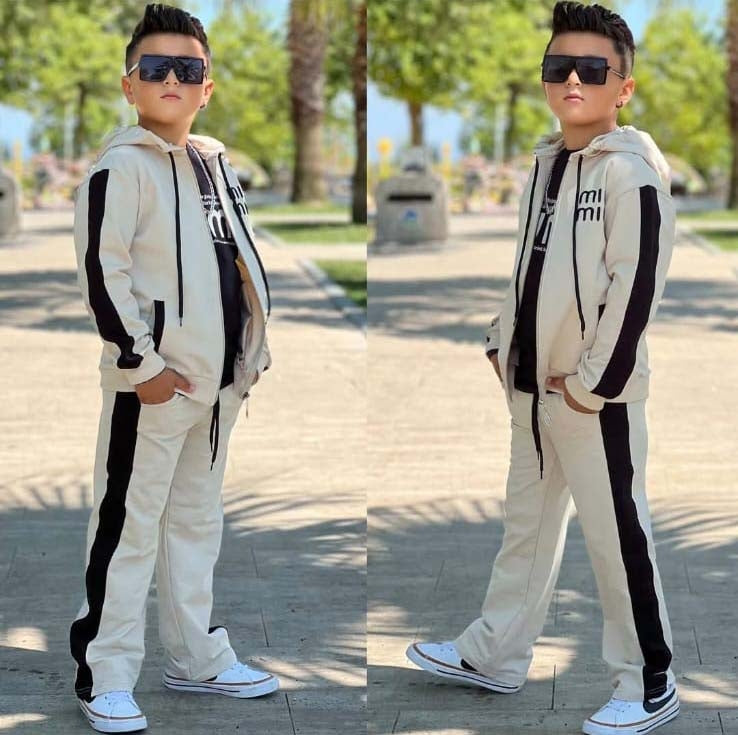 طقم رياضي أنيق ومريح للأولاد بتصميم عصري مناسب للمدرسة والخرجات اليومية يتكون من جاكيت بسحاب وبنطال رياضي بخامة ناعمة توفر حرية الحركة والراحة طوال اليوم اختيار مثالي للإطلالات الكاجوال بفضل جودته العالية ولمساته العصرية